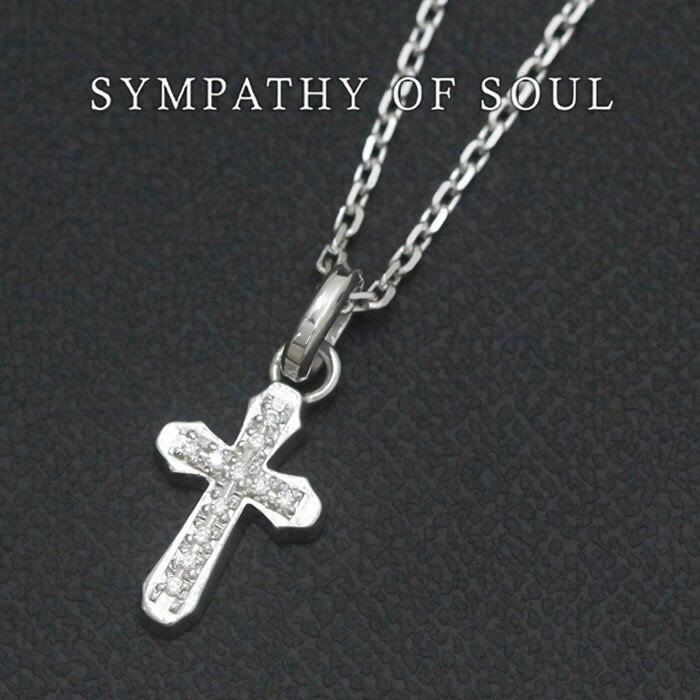 SYMPATHY OF SOUL シンパシーオブソウル Smooth Cross Pendant SILVER w/CZ Necklace スムースクロス チェーンセット ネックレス シルバー ジルコニア 【正規商品 公式通販】