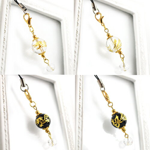 天然石 龍 鳳 神獣 ストラップ アクセサリー 水晶 OR オニキス〔 天然石 パワーストーン アクセサリー 〕